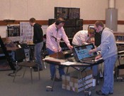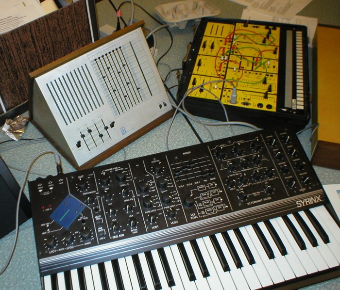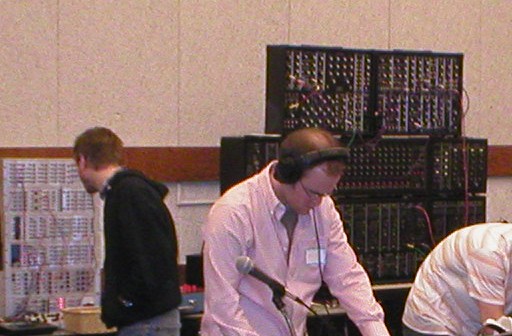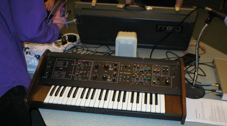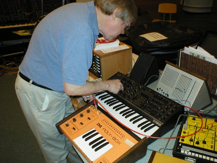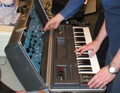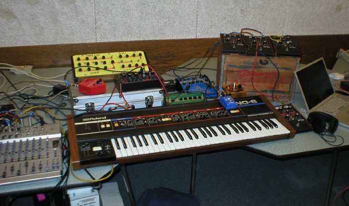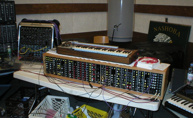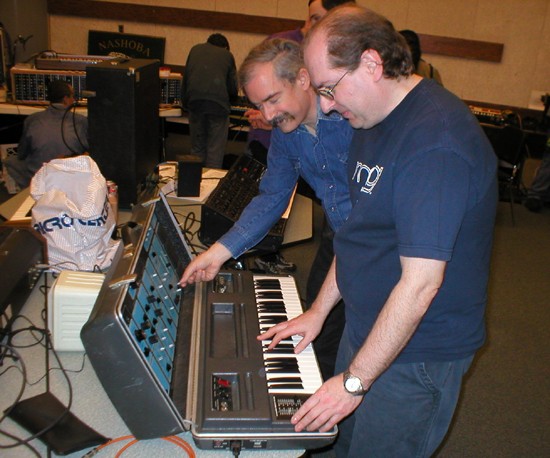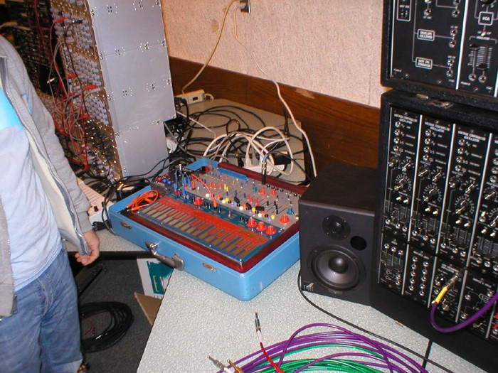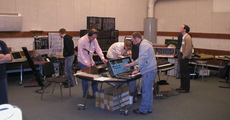 all gethering in a high school band room in Bolton, MA to show off their vintage analog synthy prizes.