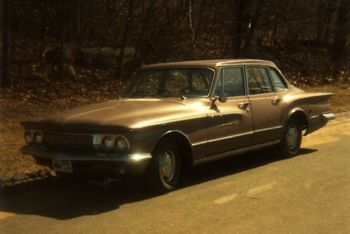 but with this big brown behemoth under my control, I was Big Man on Campus. For six months anyway. This thing kept overheating, the yellow foam in the seat cushions was becoming a rotten tapioca pudding, and the brakes felt like they were made out of wet badgers. And in 1962, their idea of "power steering" was a colossal steering wheel which was geared to take about eight revolutions to turn the car ten degrees. The wheel was housed on a really long, sharp column, and without the benefit of seatbelts in 1962 (that's right, there were NONE), that column would penetrate your chest cavity like a javelin if you ever hit anything. But I loved the automatic pushbutton transmission system it had... little 1/2" rectangular buttons for P, D, R, 1, and 2. It was like a driving video game, without the video. Or scoring. I never once scored in this car. DAMAGE INFLICTED: None |