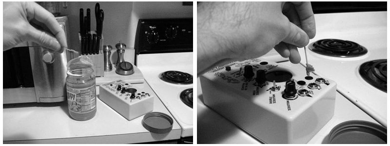 EXPERIMENT #1: I have noticed that by applying peanut butter to the interior of the pedal via the CV Input, that I was able to communicate with my dead grandfather about the whereabouts of his porno zoetrope collection. Afterwards, licking the peanut back out was very rewarding. Please note that this might void your warranty, assuming Mr. Barbour laughably even provided one.