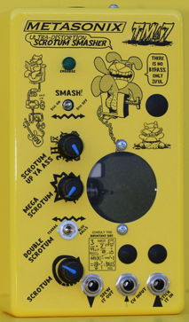 It gets better. Playing tones through the unit, while adjusting how far "Up Ya Ass" you're going, will instigate a galactic battle between your tone and the TM-7's self-generating one, causing some rudimentary sync modulations and generally pleasant unpleasantness. Incidentally, additionally adjusting "Mega Scrotum" has the general metaphorical effect of semen regulation. Give it a try, if you can restrain yourself that is.
