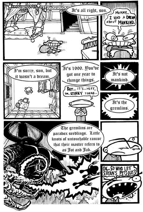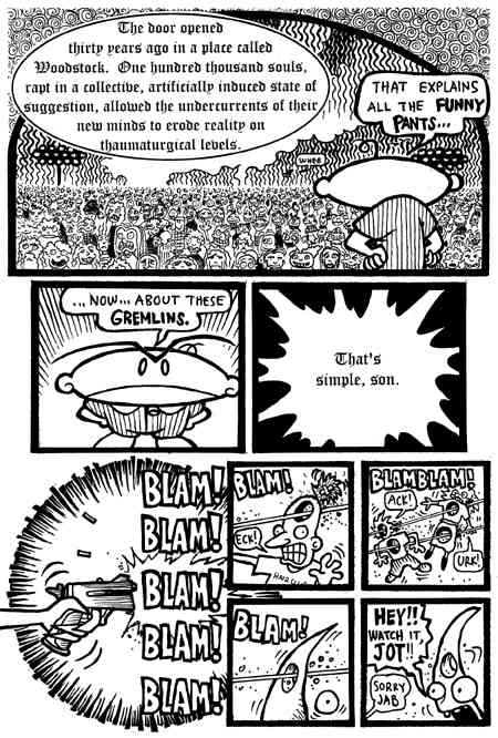 never got off the ground, since Carl and I were the only ones to produce anything for it. I'm not really proud of this work, but Jot+Jab fans might be interested in seeing their roots, so here ya go. It's a TAD metaphysical. Just a tad. |