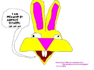 | Cool. Nice dark outline, just like my stuff. Only my stuff looks like that because I'm a lazy slob who draws TINIEST tiny pictures, and when they enlarge they look like, well, this. Only worser. |