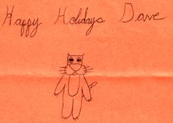 What a horrible, horrible idea. First off, I got twelve pictures on the first day they arrived; how do I pick five among them? Secondly, the quickest submissions came from those lucky enough to live closest to me here in CT. I had people in places like Finland pretty pissed over it. A couple kids even spent fourteen bucks Express Mailing their cute little drawings. It's all pretty damn touching, of course! So to make up for this clunky cacaphony of a contest, there are not five winners, but TWELVE! I even picked a few poor slobs who simply emailed me pics...at least they were quick about it. And hey, it's not like I'm giving away big-screen TV's after all! What's a few extra pics among friends? Thanks for all the entries; I'm sure I'll be getting plenty more over the next few days. Apologies to those of you who might be disappointed, but I still will feature some of the cooler masterpieces I get on my FAN ART page! The following people all got custom art from me! AND THE WINNERS ARE... |